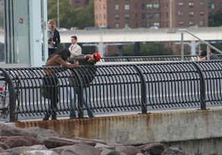 Unfortunately I'd only carried my 100-300mm lens for the SLR, so I had to use the iPhone for the sky photos... But I had some fun with the SLR, too, photographing people around the park. A few couples gave me their cameras for me to photograph them with the bridge and the Manhattan skyline behind them, and I always smilingly oblige...